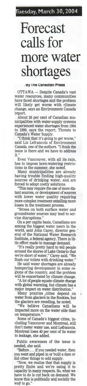 American Rain Water Catchment Association City of Austin Texas Water Conservation Alberta, Canada Water Conservation Press Clips from my own backyard. |